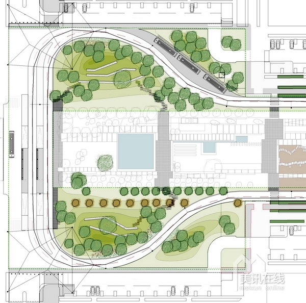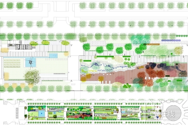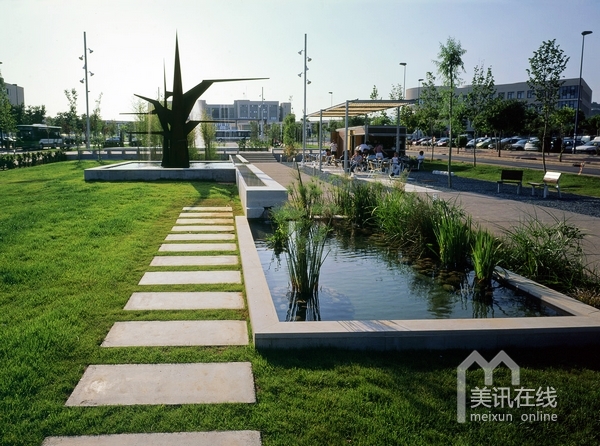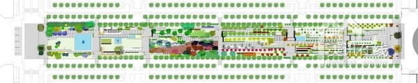 根據(jù)所規(guī)定的目標(biāo),中軸線(xiàn)不僅將被運(yùn)用為連接元素,也會(huì)成為一個(gè)學(xué)生們休息、集會(huì)和交流的中心場(chǎng)所。但和大學(xué)里其他地方不同的是,同學(xué)們不會(huì)忘記它是獲取知識(shí)的場(chǎng)所。它是基于一個(gè)系統(tǒng)的某些復(fù)雜性,鋪設(shè)沿著定向課程和組成的交替,連同一個(gè)系統(tǒng)推動(dòng)力,完成遠(yuǎn)大的植物實(shí)時(shí)性的前景。它把花園塑造成了一個(gè)有組合序列的整體,物種遵從植物邏輯,不與感官享受相分離。