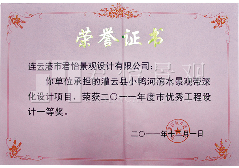 2011年獲獎(jiǎng)證書(shū)