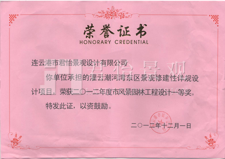2012年獲獎證書
